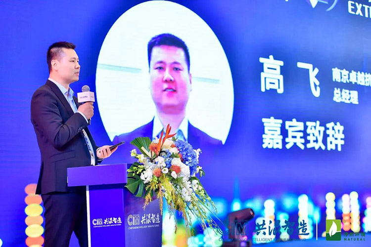 在颁奖典礼结束之后,晚宴独家赞助商南京卓越挤出装备有限公司总经理高飞先生上台致辞祝酒。时光如梭,风雨同舟;一份耕耘,一份收获。今年是卓越装备发展的第十年。高飞先生对在座宾客表示热烈的欢迎。