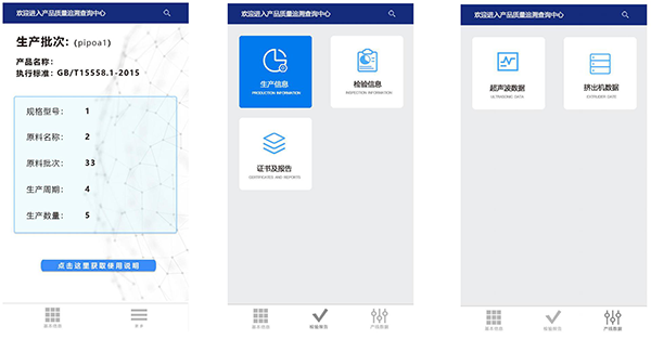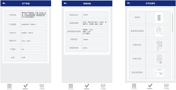 可通过微信对管材上的二维码标识进行扫码, 能够实现对批次管材进行从原料、生产、质检、 出库环节进行全周期的质量追溯功能。